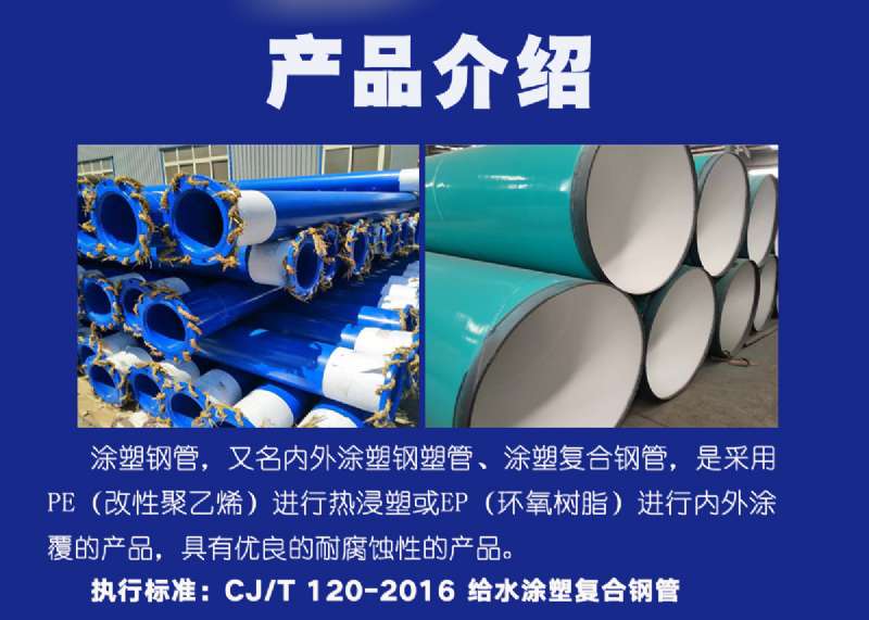涂塑鋼管,又名涂塑管、鋼塑復合管、涂塑復合鋼管,是以鋼管為基體,通過噴、滾、浸、吸工藝在鋼管(底管)內表面熔接一層塑料防腐層或在內外表面熔接塑料防腐層的鋼塑復合鋼管。